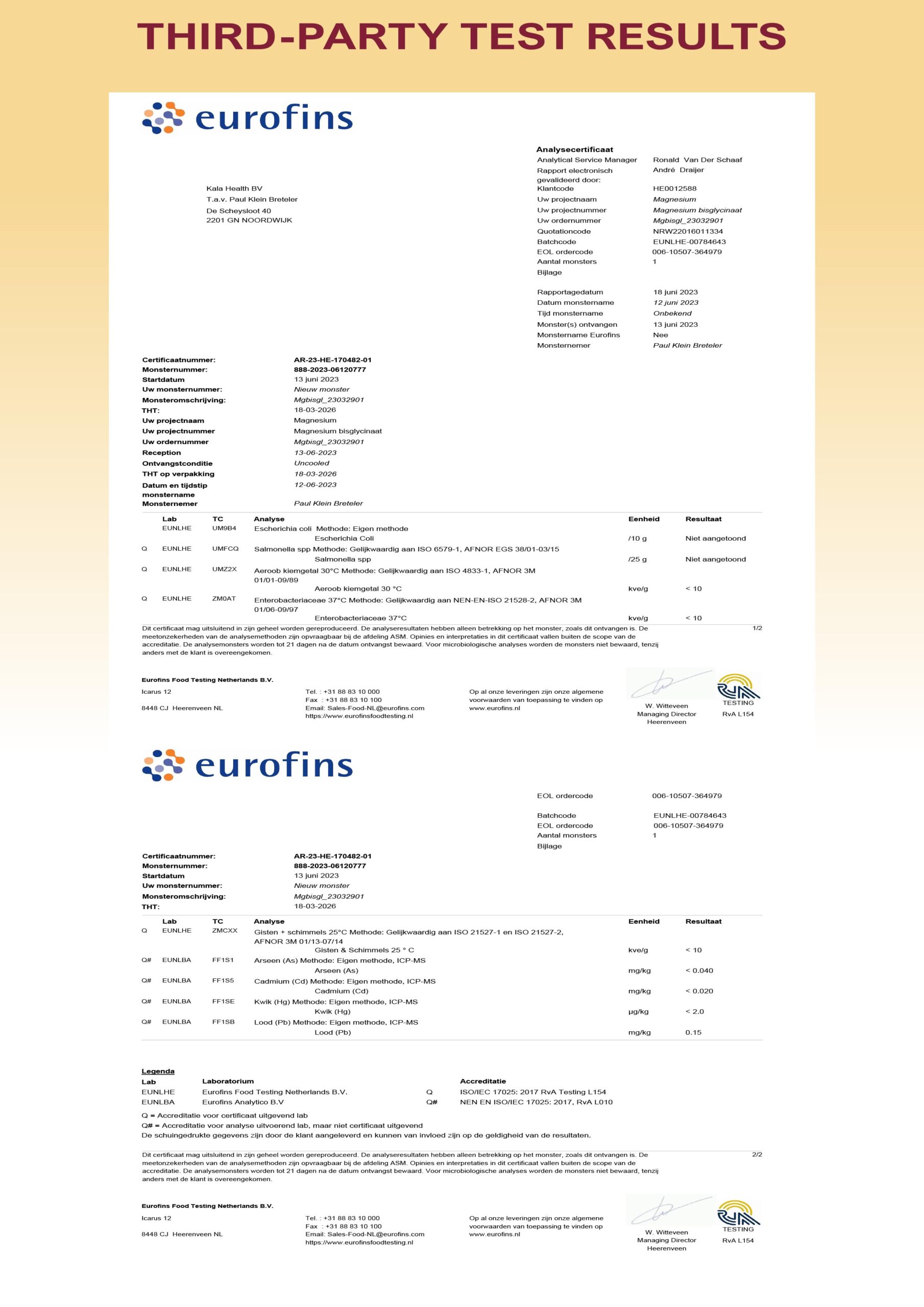 - Eurofins getest op microbiologie en zware metalen